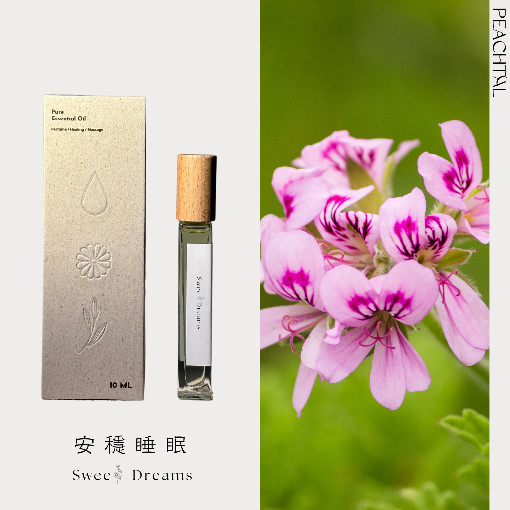 「安穩睡眠」- 讓天竺葵的柔和擁抱你的夢境,締造平和的夜晚,從根脈輪開始,重建你的安穩基石。